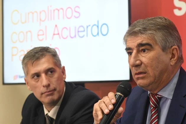 El Gobierno Provincial confirmó que saldarán la deuda de la paritaria 2023. Se trata de un 36.4%, del cual ya se abonó un 14% en enero por planilla complementaria, y ahora se completará pagando el 22,4% Es lo que faltaba de “Una paritaria que no firmó el gobierno pero que nos hacemos cargo” aseguró el Ministro de Gobierno, Fabián Bastía.